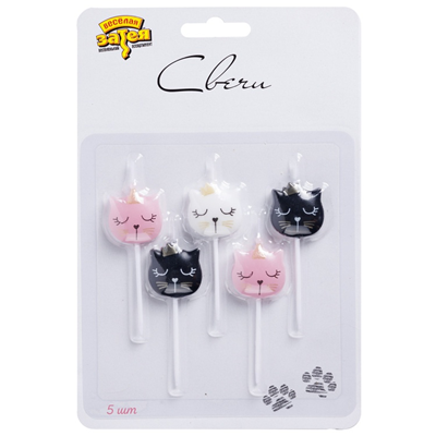 Главная Все для праздника Свечи и фонтаны в торт Свечи на пиках "Котики в короне"